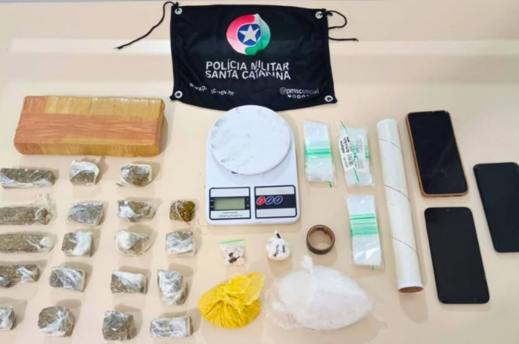 Nesta quinta-feira (9), a Polícia Militar (PMSC) prendeu uma mulher e apreendeu um adolescente, que estavam realizando tráfico de drogas em uma residência, no bairro Caçador, em Capivari de Baixo.