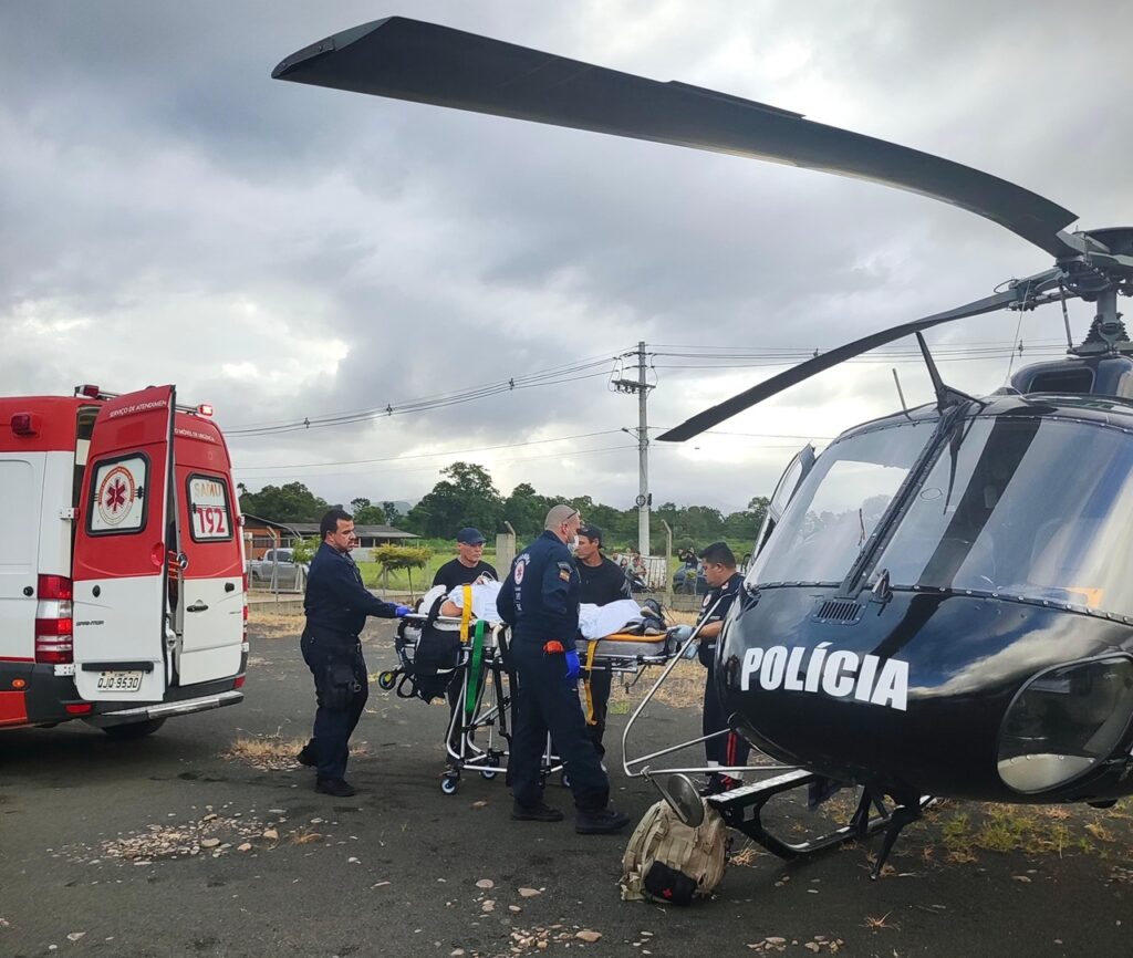 Após estabilizar e medicar a paciente, ela foi encaminhada de Helicóptero para o Hospital São José em Criciúma que é referência em Trauma.