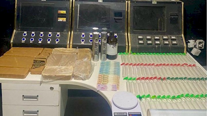 Além das drogas, os policiais apreenderam três máquinas caça-níqueis, duas balanças de precisão, um rolo de plástico filme, 78 frascos de lança-perfume, insumos para produção de entorpecentes e R$ 1.055,00 em dinheiro. Os suspeitos foram presos e todo o material recolhido foi encaminhado à Delegacia de Polícia Civil para os devidos procedimentos.