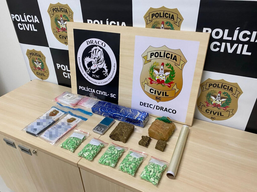 Na manhã desta quinta-feira, cerca de 60 policiais civis da DEIC, DPGF e NOC foram mobilizados para cumprir os mandados expedidos pela Vara Criminal da Região Metropolitana da Comarca da Capital. Durante as ações, um dos investigados foi preso com 800 comprimidos de Ecstasy e 1,5KG de maconha. Além disso, diversos objetos foram apreendidos e serão periciados. A DRACO/DEIC reafirma seu compromisso no combate ao tráfico de drogas e ao comércio ilegal de armas em Santa Catarina.