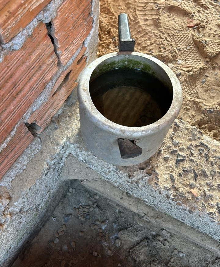 No local, os policiais civis encontraram um cão da raça pastor alemão amarrado por um fio elétrico de aproximadamente 1,5 metro, preso em um canto do terreno e sem acesso visível a alimento, além de estar com acesso somente a água suja.