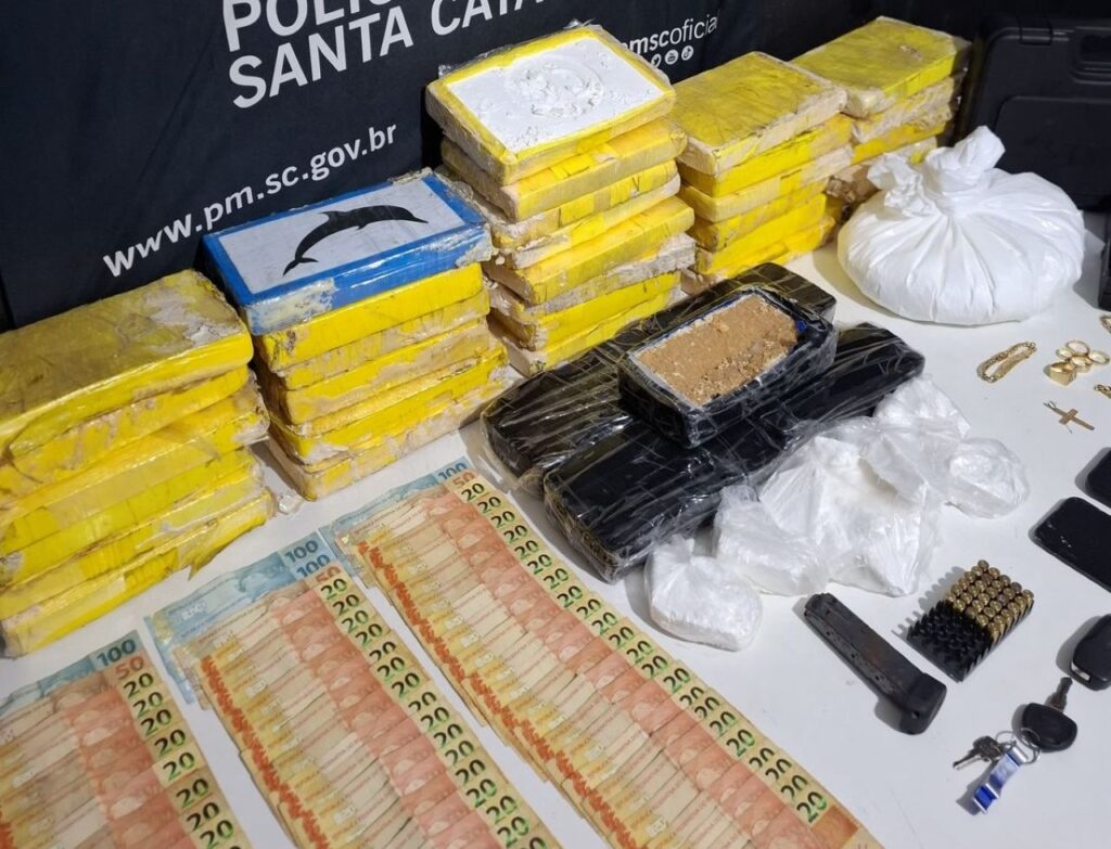 A Polícia Militar de Santa Catarina realizou uma operação contra o tráfico de drogas em Itajaí na quinta-feira (26), resultando na apreensão de mais de 38 quilos de entorpecentes e 30 munições de calibre .380. Dois homens, de 29 e 35 anos, foram presos no bairro Cordeiros durante a ação coordenada por equipes de inteligência e patrulhamento.