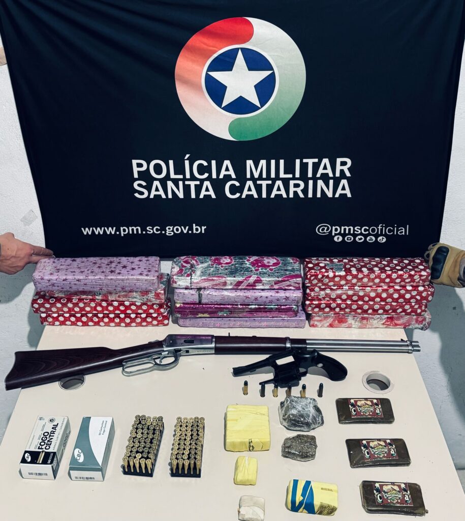 A Polícia Militar recebeu uma denúncia anônima sobre uma casa no Centro de Palhoça que estaria sendo usada para guardar armas e drogas. Durante a operação, os policiais flagraram uma sacola branca sendo arremessada, dentro da qual foram encontradas três placas de haxixe.