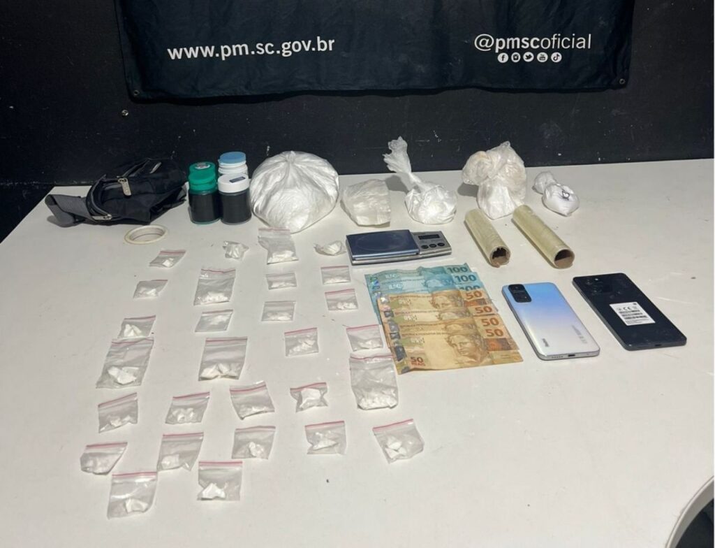 A Polícia Militar prendeu em flagrante na tarde da quarta-feira (4), no bairro São João, em Itajaí, um casal, um homem com 47 anos e sua esposa e de 46, fazendo entrega de drogas no portão de uma residência do bairro.