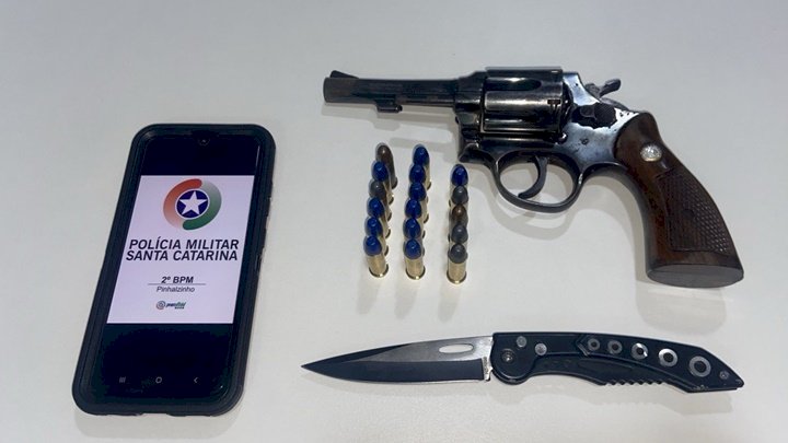 Na madrugada de sábado (15), a Polícia Militar de Santa Catarina (PMSC) prendeu dois homens por porte ilegal de arma de fogo e arma branca em Pinhalzinho. A ação foi realizada pelo 2º Batalhão de Polícia Militar de Fronteira (BPM/Fron) após uma denúncia de perturbação do sossego na Avenida Porto Alegre. No local, os policiais encontraram cerca de 10 pessoas reunidas e, durante a abordagem, localizaram um canivete na cintura de um jovem de 18 anos.