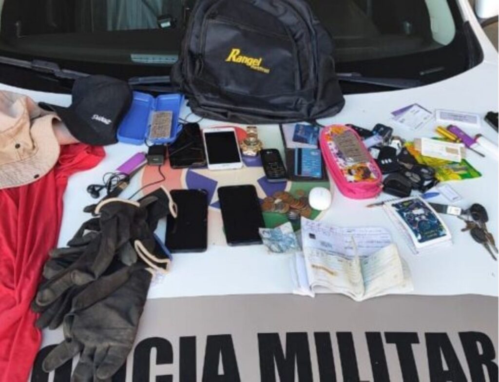 Nas buscas, a guarnição encontrou o veículo sendo conduzido por um homem já conhecido no meio policial, por ter efetuado diversos furtos na cidade. O suspeito tentou fugir da abordagem, mas foi contido pelos policiais militares. Foram recuperados o veículo Saveiro, vários objetos e a bicicleta que era produto de furto realizado durante a semana passada.