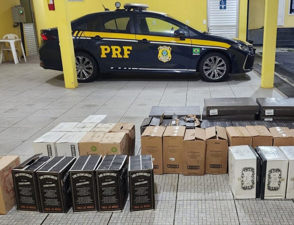 A Polícia Rodoviária Federal (PRF) apreendeu, na noite de terça-feira (8), cerca de 300 garrafas de vinho de origem argentina que estavam sendo transportadas ilegalmente em um furgão na BR-101, em Barra Velha,.
