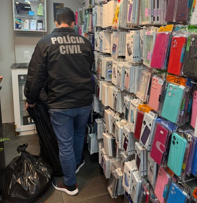Durante a operação, foram fiscalizados três estabelecimentos comerciais no Centro da Capital. Foram apreendidas mais de 1.700 unidades de produtos falsificados, entre fones de ouvido, capas de celular e cabos de carregamento, em um montante avaliado em mais de R$ 100 mil.