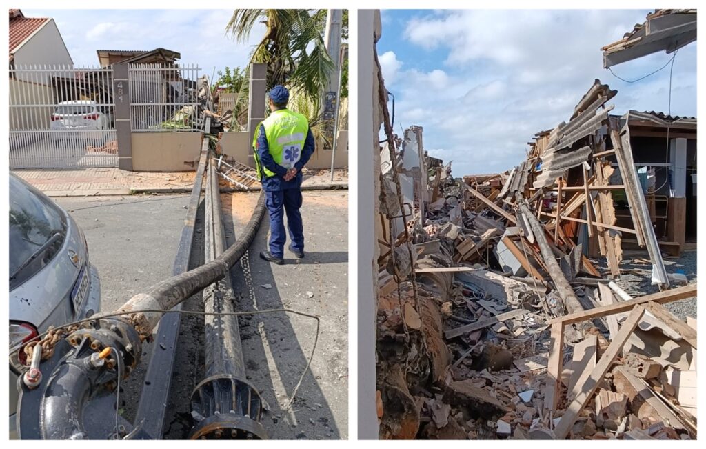 A queda da máquina também danificou a rede elétrica da Celesc, uma calçada e um GM/Celta que estava estacionado na rua. Após avaliação do local, os bombeiros deixaram os imóveis sob responsabilidade da Coordenadoria Municipal de Defesa Civil, que acompanha a ocorrência e deve intermediar a remoção da máquina e organizar o acolhimento das famílias afetadas.