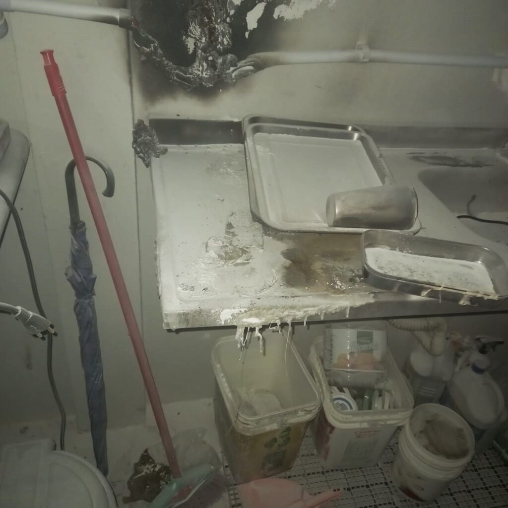 O incêndio atingiu um equipamento do tipo resistência elétrica utilizada para aquecimento de água, danificando a instalação elétrica (tomada) que segundo relato do proprietário o mesmo teria ficado ligado após o fechamento do estabelecimento.