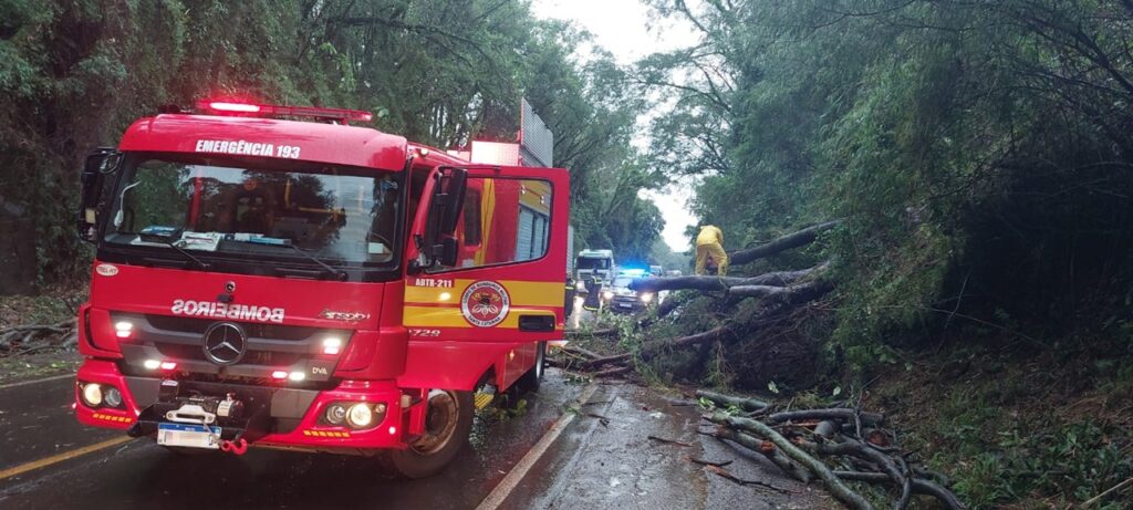 Em Iporã do Oeste e São João do Oeste, o CBMSC também registrou diversas ocorrências envolvendo quedas de árvores nas rodovias SC-386 e SC-163, com atendimento das guarnições locais e apoio de moradores. Houve ainda atendimento em uma residência atingida por árvore na comunidade de Linha Monte Maria, onde foram registrados danos estruturais e queda de rede elétrica. A área foi isolada e a moradora orientada a não permanecer na casa até a avaliação técnica.