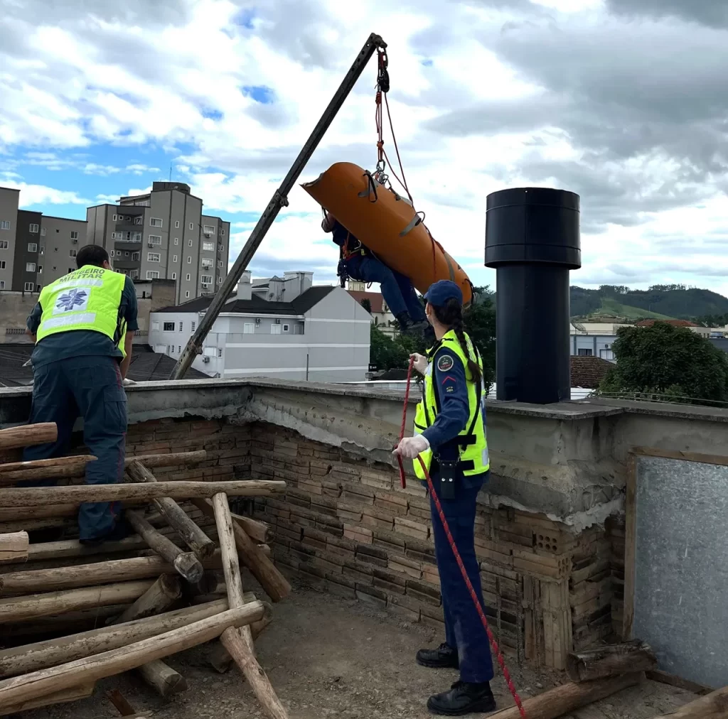Trabalhador é resgatado após viga cair em cima de seu braço em Braço do Norte