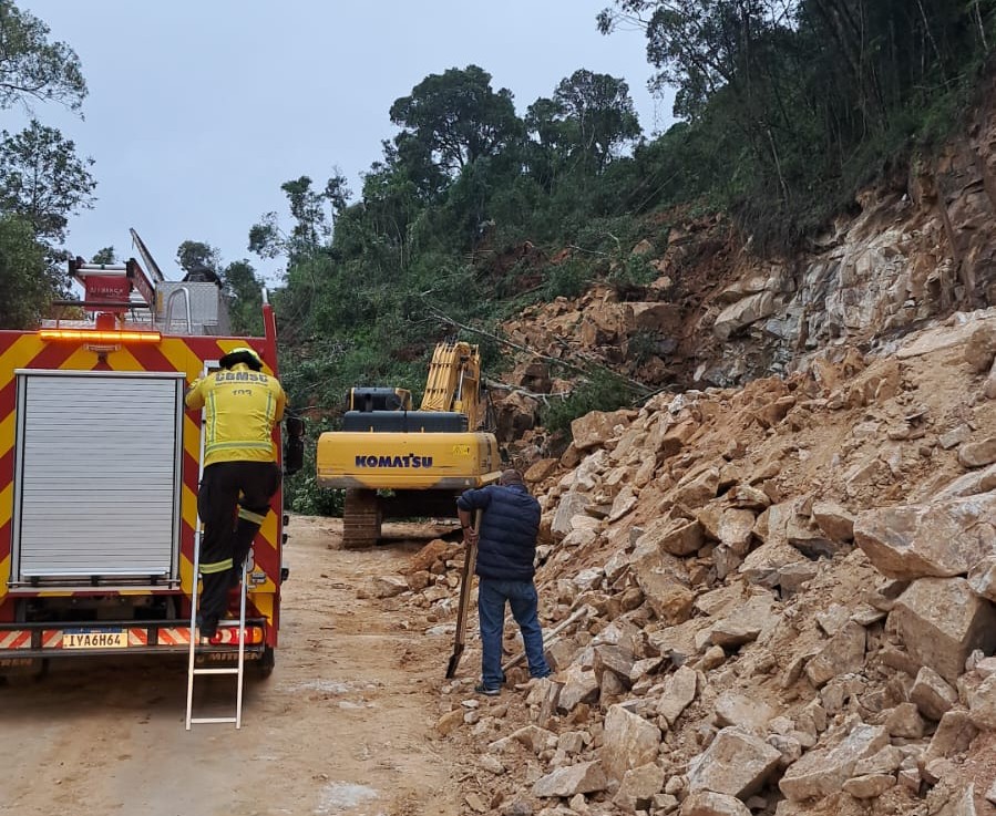 As guarnições do CBMSC que atuavam na área interromperam as atividades por conta da instabilidade do terreno e com o agravante da chuva.