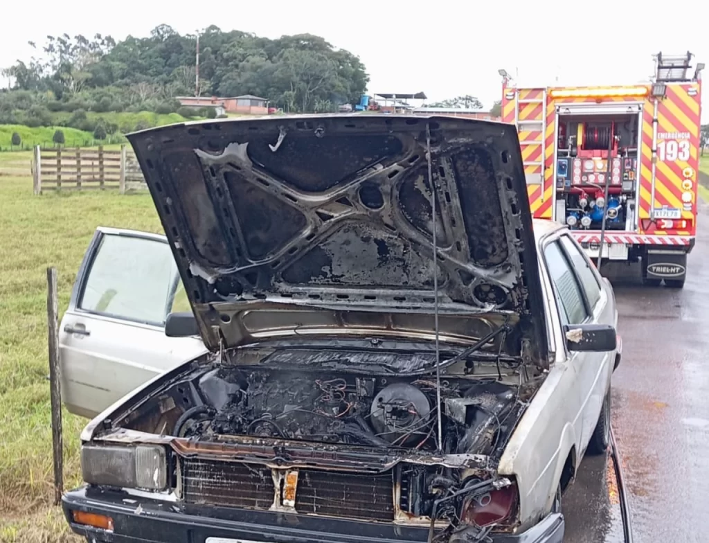 Um veículo VW Santana pegou fogo no bairro Guarita, em Sombrio, por volta das 07h50 desta segunda-feira (15). O incêndio se desenvolveu no compartimento do motor e o combate foi realizado até o fogo se extinguir completamente.
