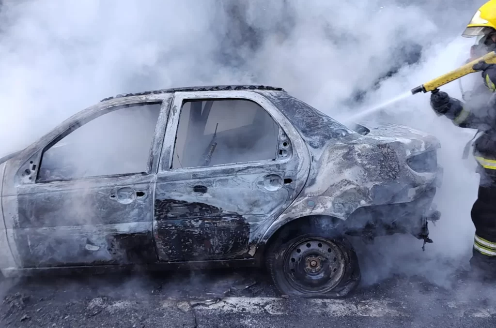 Um veículo Fiat Siena pegou fogo na tarde desta sexta-feira (19), na BR-282, km 52, em Águas Mornas. O incêndio, que começou no compartimento do motor e se espalhou rapidamente, foi controlado pelos bombeiros com o uso de aproximadamente 1.000 litros de água. O condutor do veículo, de Palhoça, não se feriu e relatou que o fogo não foi causado por materiais inflamáveis dentro do carro.