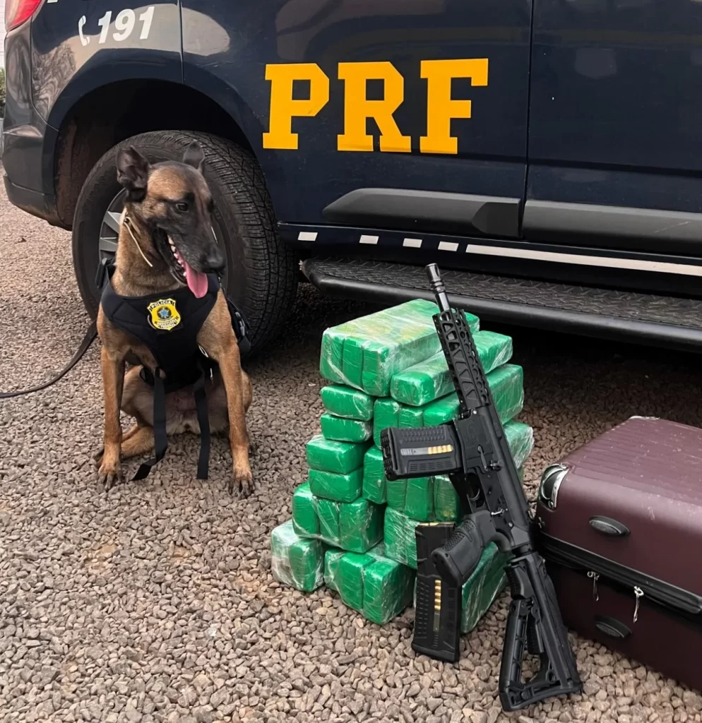 A cadela de faro da PRF “Quântica” deu sinal positivo para a existência de entorpecente na bagagem de uma adolescente, de 17 anos. A jovem disse que levaria a mercadoria até Passo Fundo/RS, mas não revelou quem receberia a encomenda.