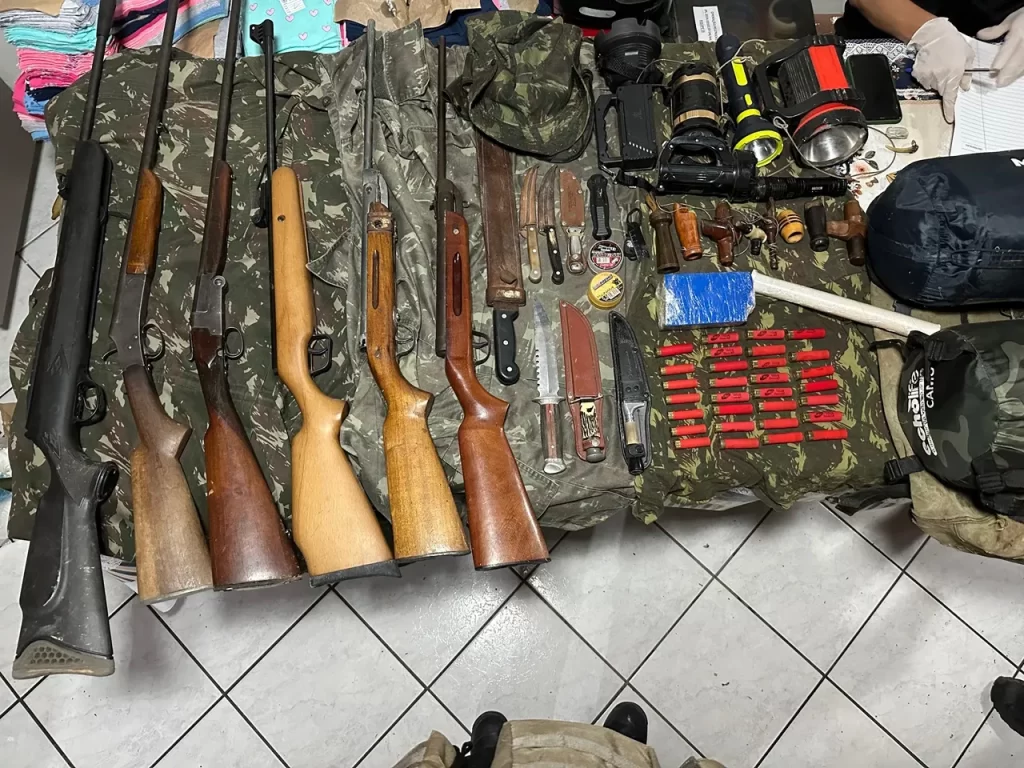 As ações resultaram na apreensão de quinze armas de fogo, mais de mil munições de diversos calibres, uma mira laser e uma luneta. Ainda foram presas três pessoas em flagrante por porte ilegal desses materiais.