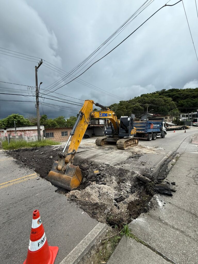 No momento, o trânsito está bloqueado na região, mas o secretário Jerry Comper determinou prioridade máxima na execução da obra para que ela seja finalizada e o tráfego liberado ainda nesta sexta-feira, 17 de janeiro.